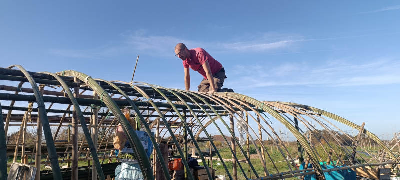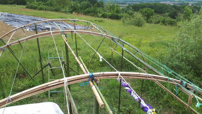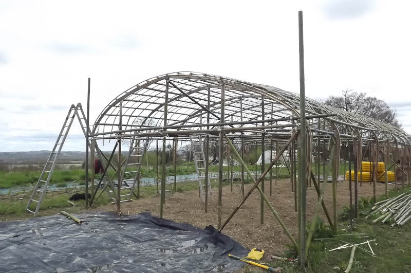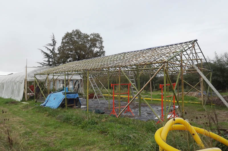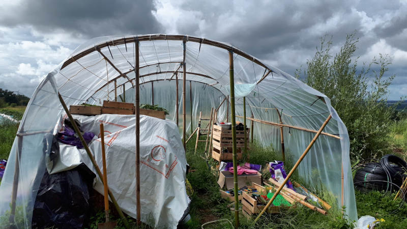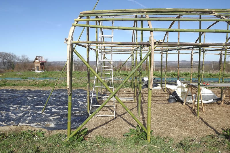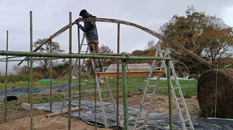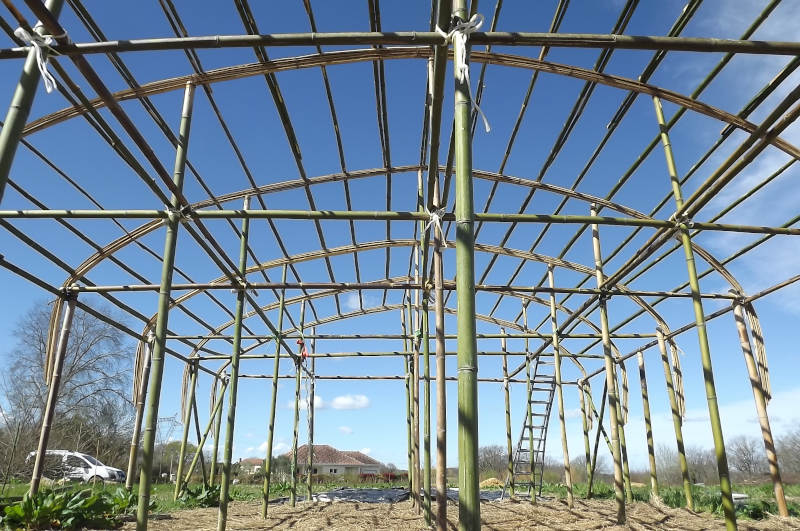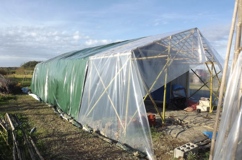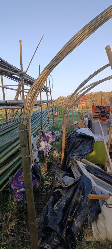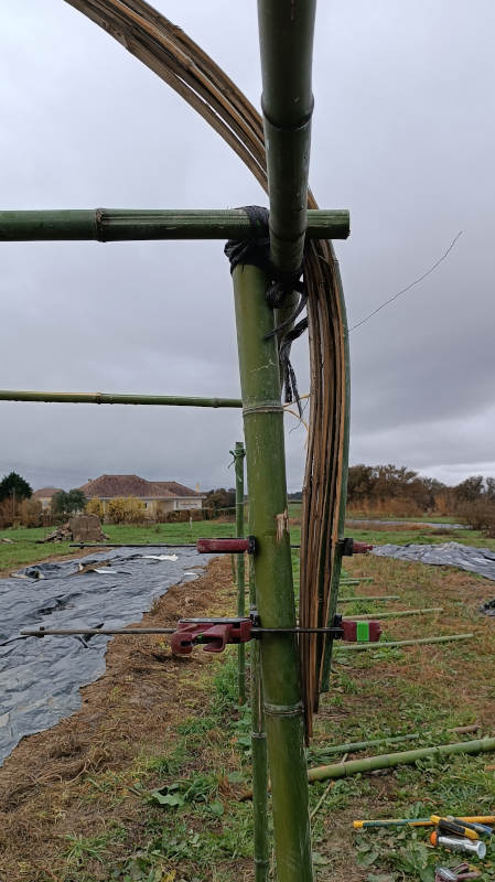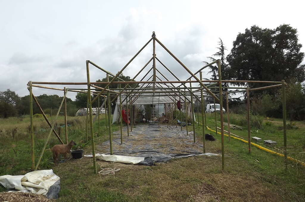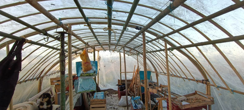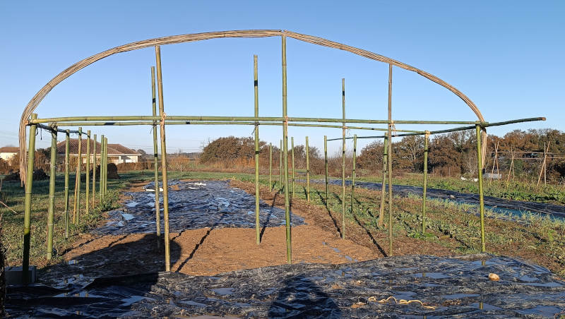 Première tentative de construction d'une serre en bambou, hiver-printemps 2023.