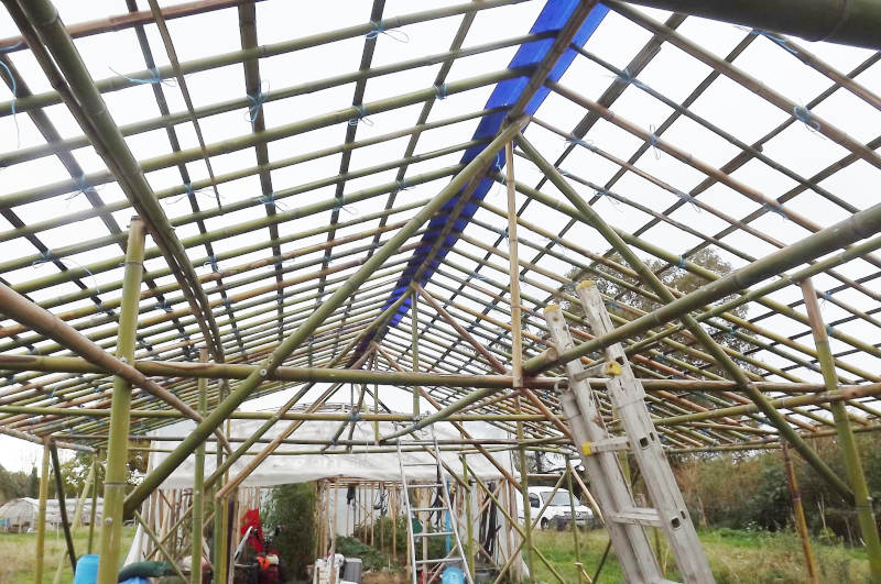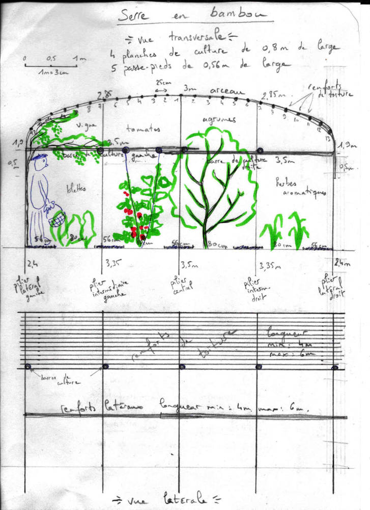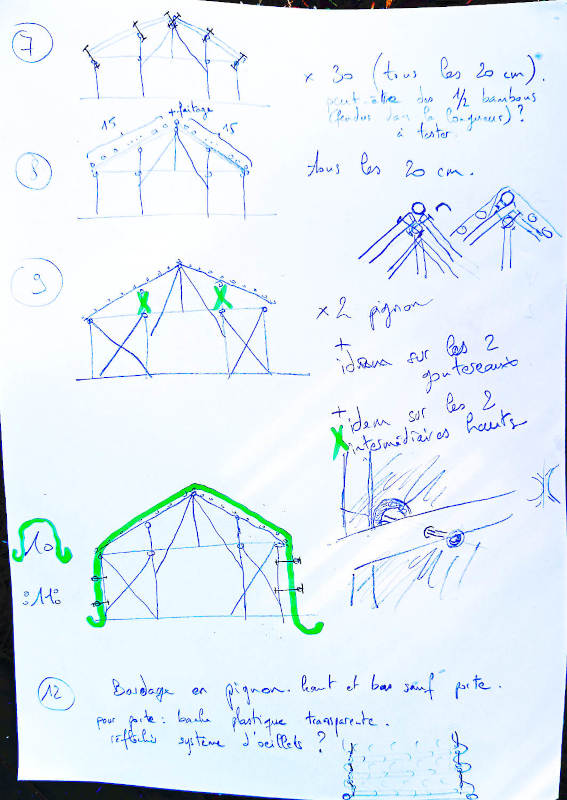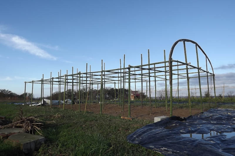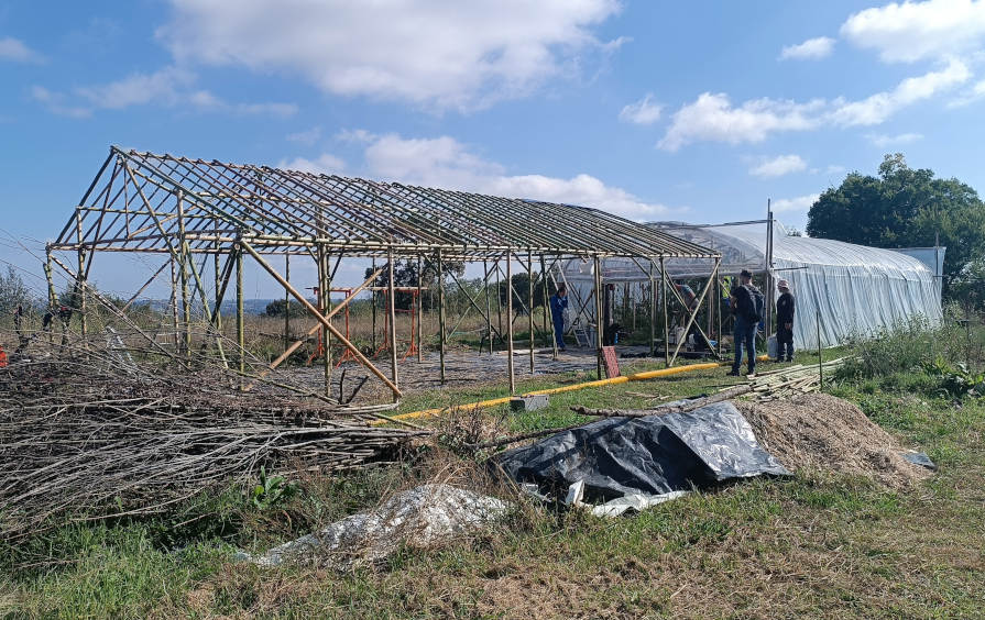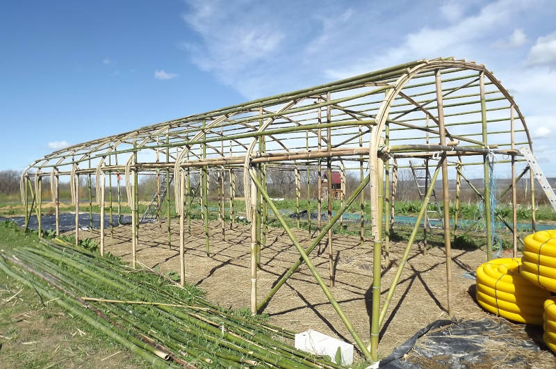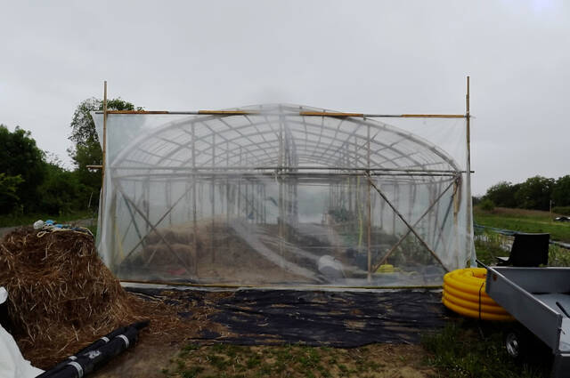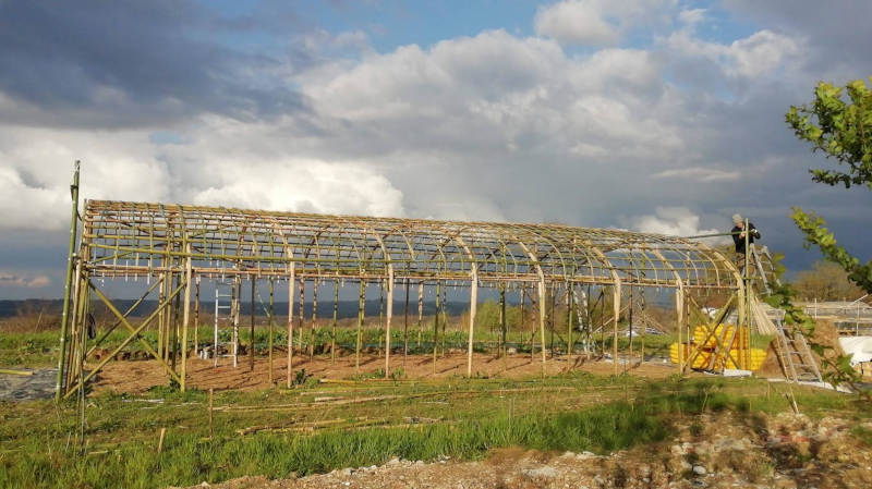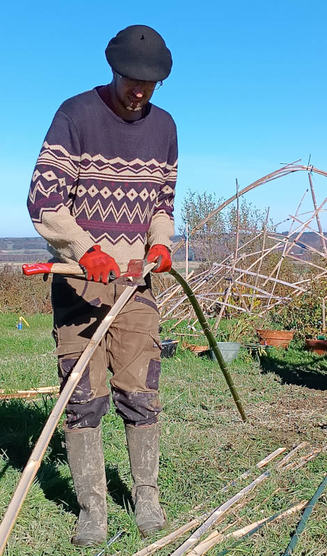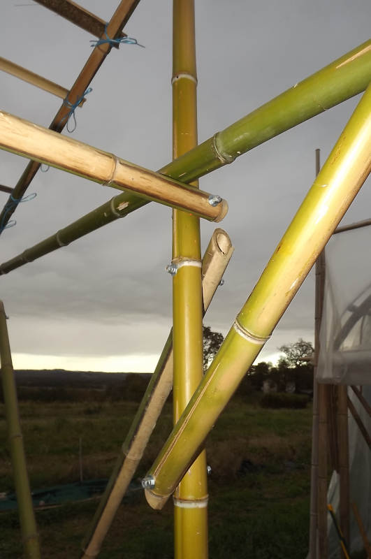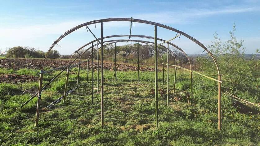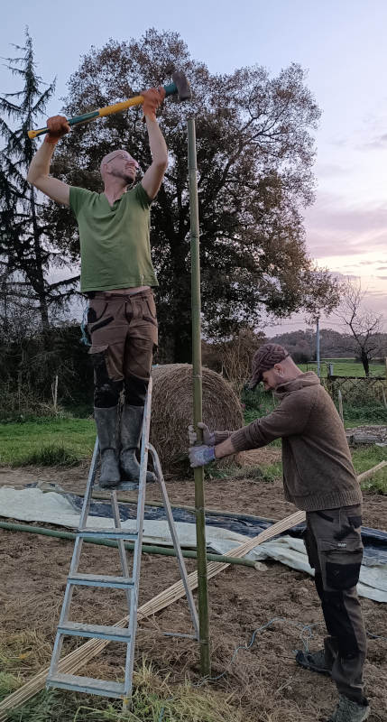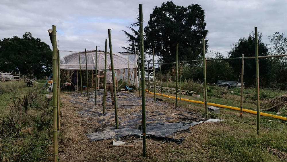 Première tentative de construction d'une serre en bambou, hiver-printemps 2023.
