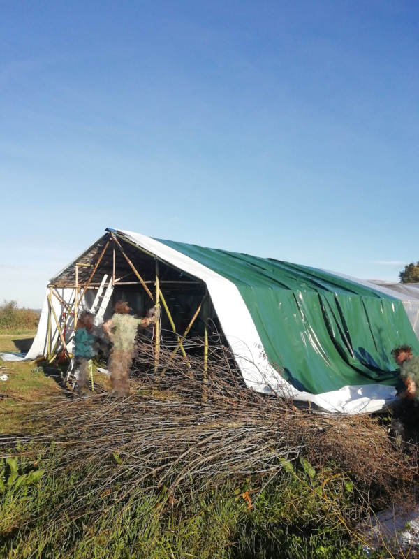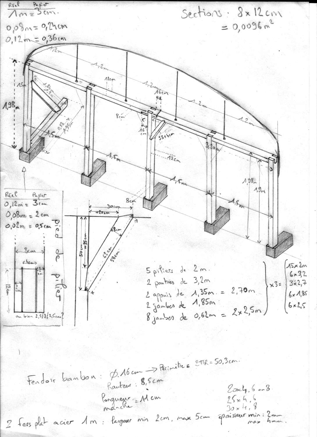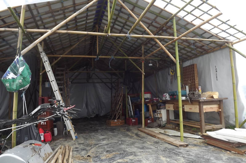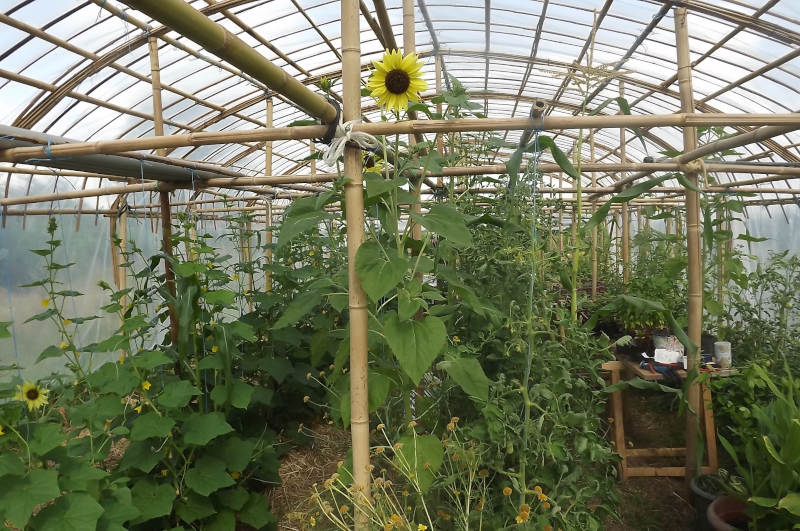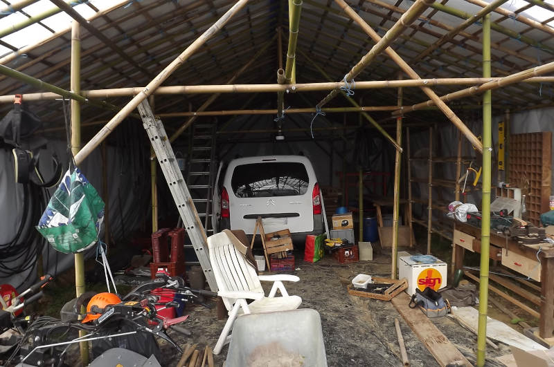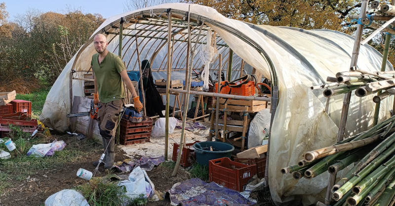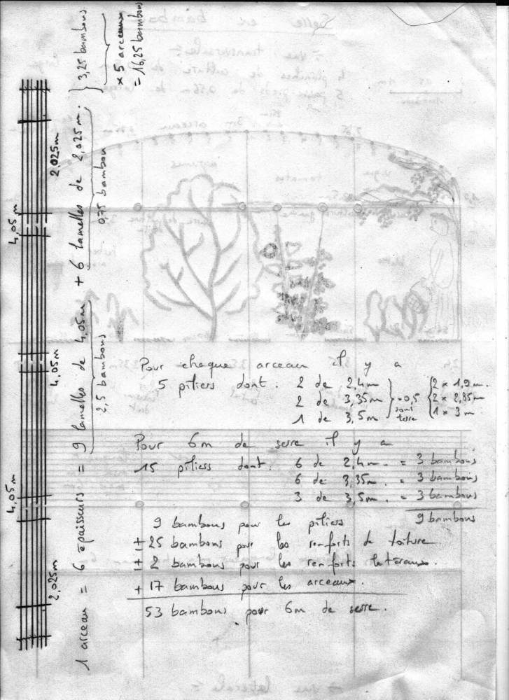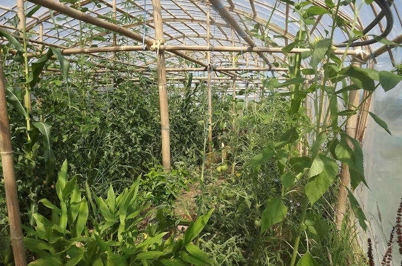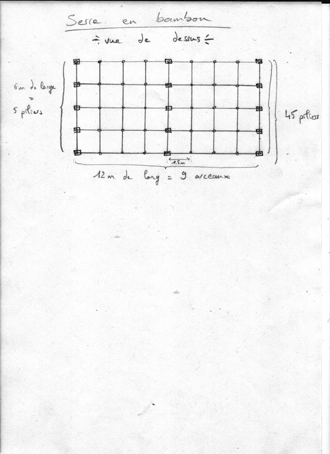 Première tentative de construction d'une serre en bambou, hiver-printemps 2023.