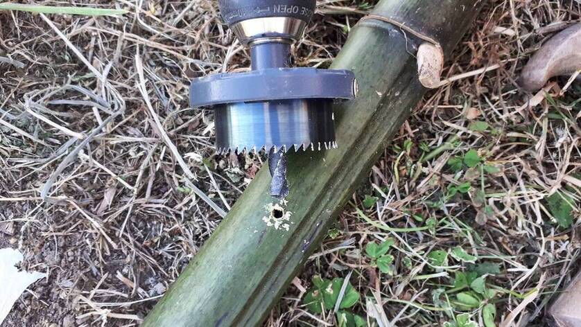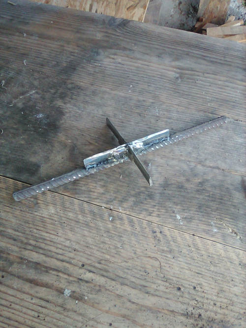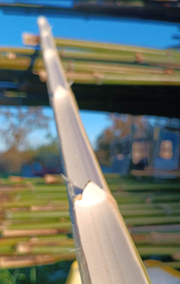 Ce fendoir a été fabriqué maison pour faire des lames à partir des tiges de bambou. Après quelques mois d'usage, il a fini par casser sous les coups de massette nécessaire à le faire avancer dans la tige, sans doute parce que la soudure n'était pas assez forte (je débute).
