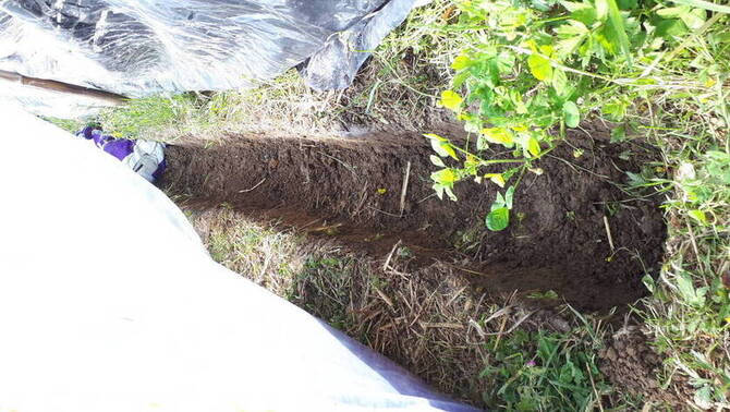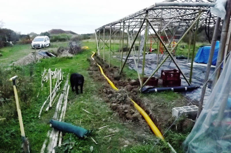 Cette tranchée est destinée à recevoir la bâche puis des sacs lestés avec la terre qui en est issue