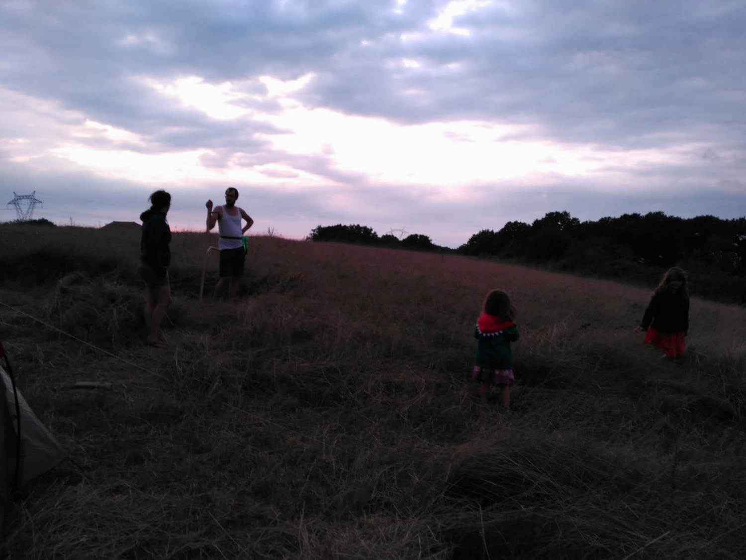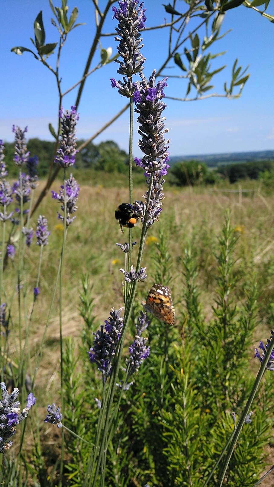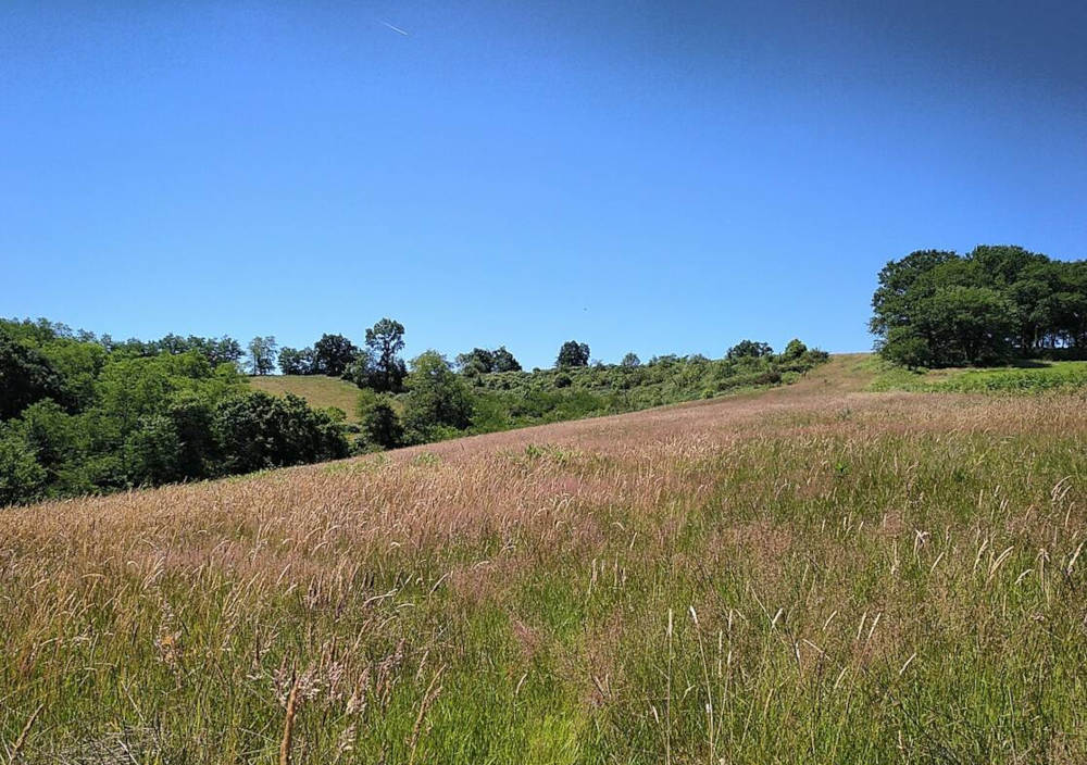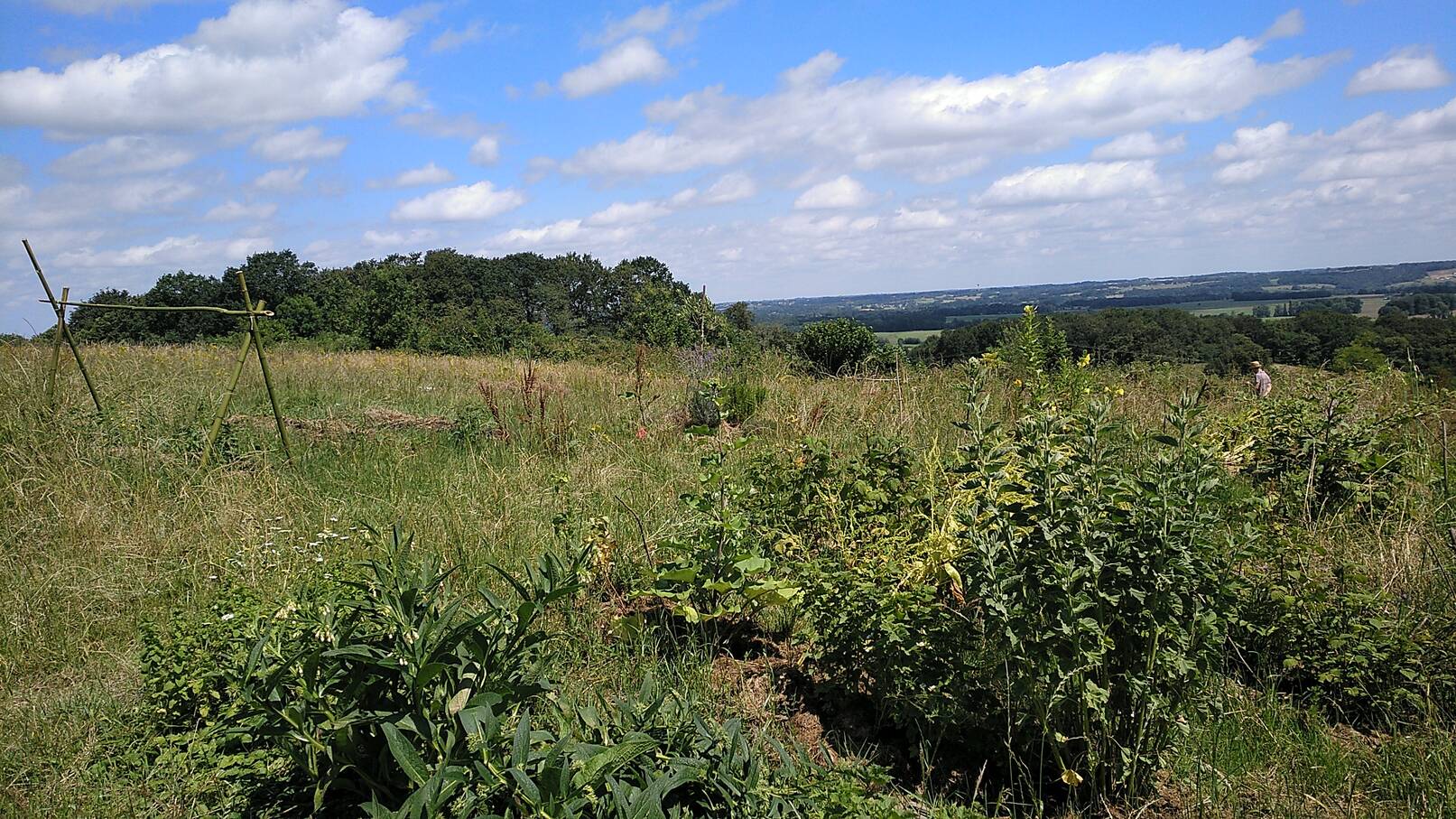 Vue du nord au sud sur le sommetVue d'ouest en est sur le sommetCoucher de soleil sur la friche fleurieLe terrain en friche fleurie avec carottes sauvages et millepertuisPapillons "Colliers de corail" en train de s'accoupler sur une tête d'ail sauvageVue depuis la pointe nord du terrain vers le sud